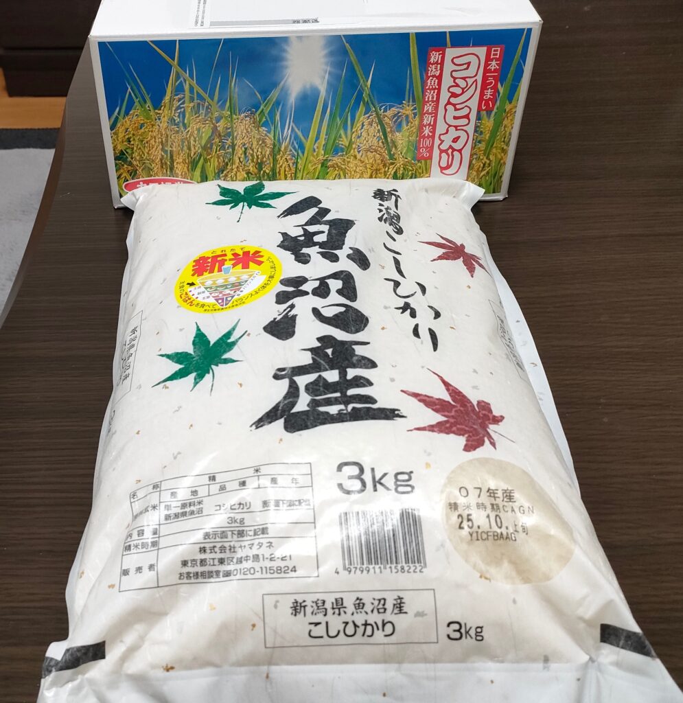 大好きな魚沼産こしひかりです(3㎏)…大助かり!