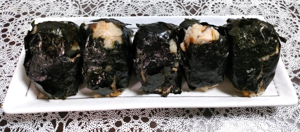 そして五目炊き込みご飯を炊いて、持ち帰り用におにぎりにした