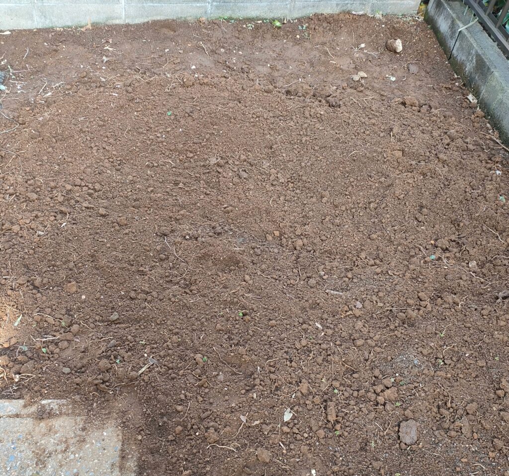 もう庭の手入れも、草取りも苦痛になってしまったので、片付けて人工芝にすることにしたのです