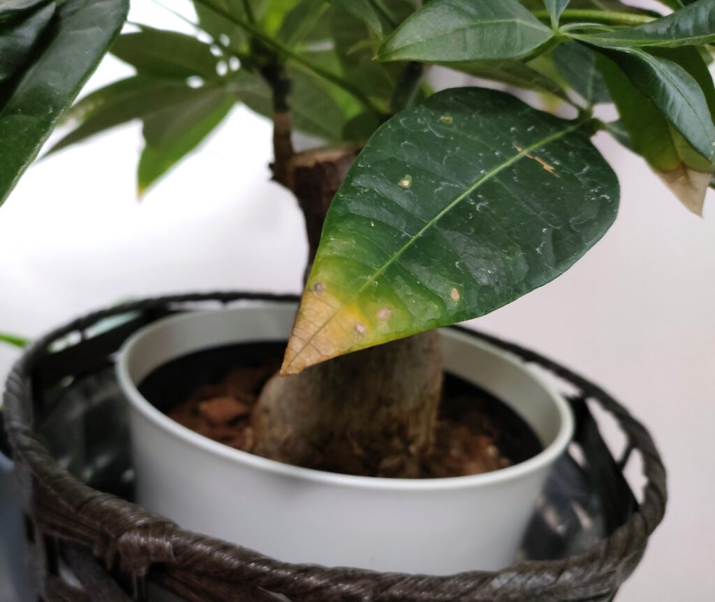 観葉食物のパキラの葉先が黄色くなっている…